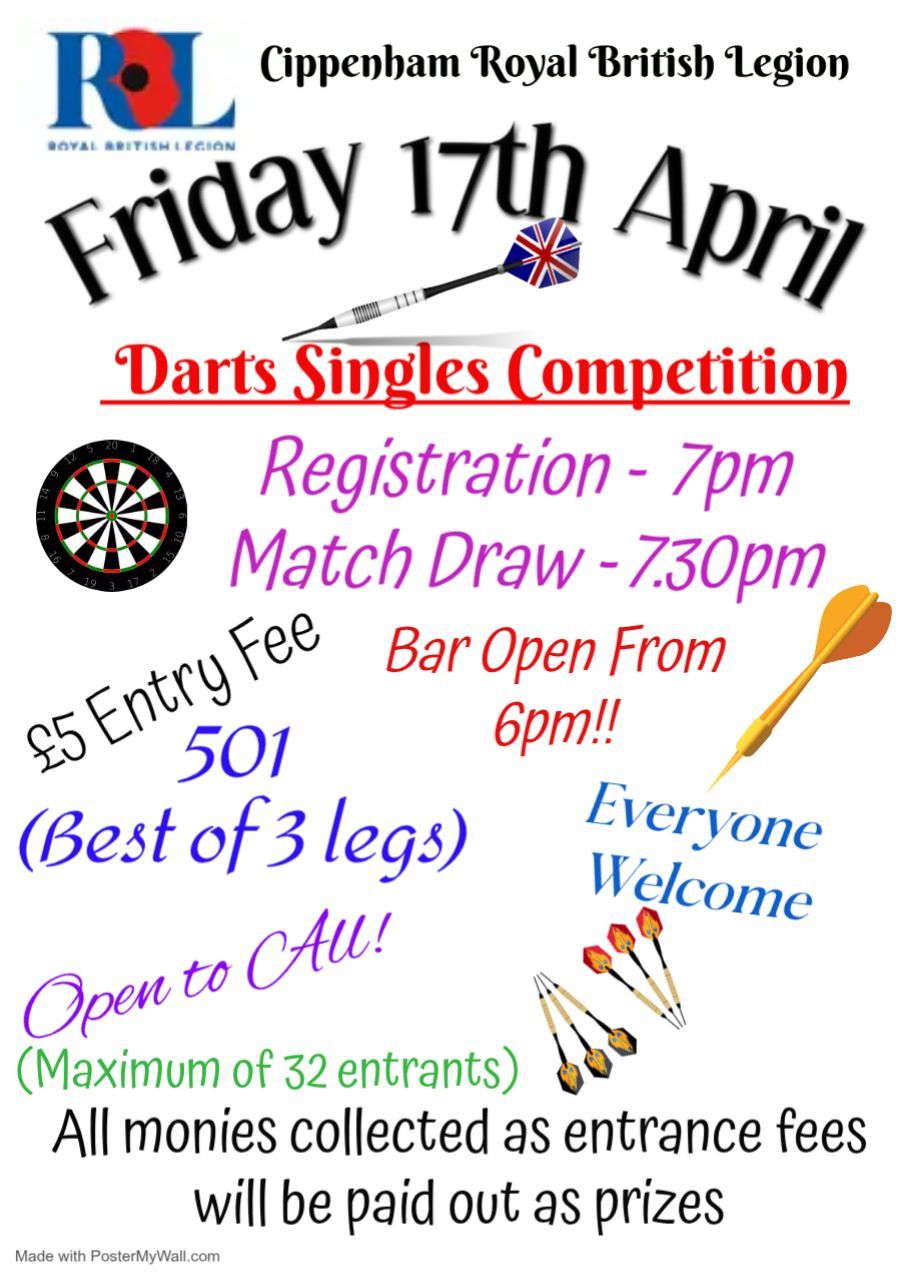 17th April 2026 - Darts Singles Competition at the Cippenham Royal British Legion Club